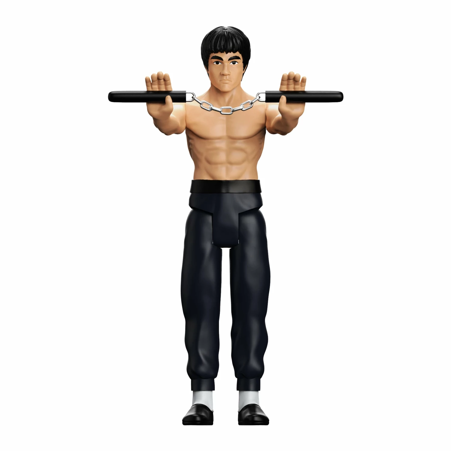 Bruce Lee presented many different faces to the world, but one was reserved strictly for his opponents in combat. Packaged on a special diecut cardback, this 3.75” articulated “Dragon Flex” Bruce Lee ReAction Figure features detail that allows the figure to be posed with the included real metal chain nunchucks grasped between outstretched arms. Flex your appreciation for this legend with this limited edition Bruce Lee ReAction Figure!