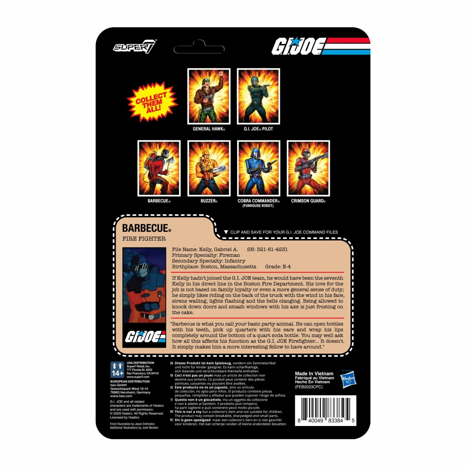 Coming from a long line of firefighters, itβs only natural that he would help G.I. Joe put out fires, literal and figurative, around the globe! This 3.75β scale, articulated G.I. Joe ReAction Figure of Barbecue features the firefighter suited up and ready to tackle the hottest of conflicts, and includes a fire extinguisher accessory! The struggle for global control always needs fresh heroes and so does your collection, so add the G.I. Joe ReAction Figure of Barbecue to your troop roster today!
