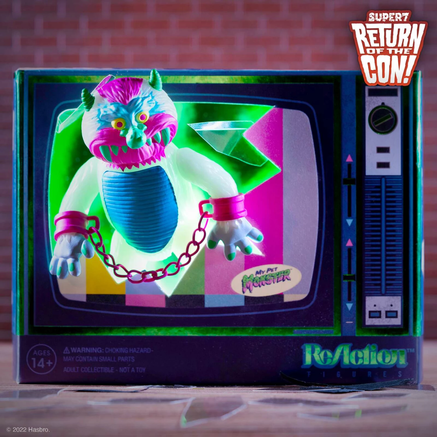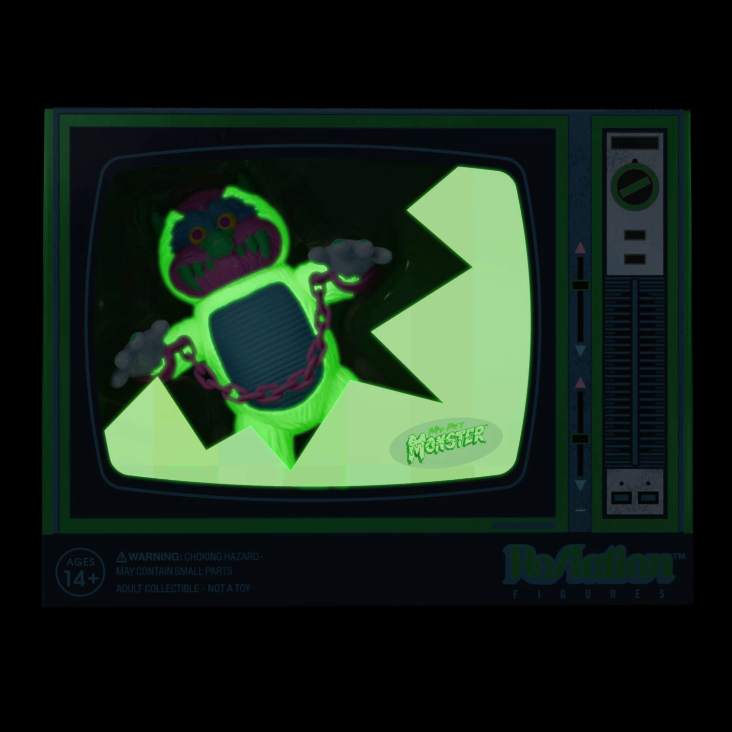 Prepare yourself for a monstrous dose of ‘80s nostalgia with Super7’s glow-in-the-dark pastel My Pet Monster ReAction Figure! This 3.75” articulated figure features a white glow-in-the-dark body with pastel color details, and comes in vintage TV box packaging with glow-in-the-dark accents!