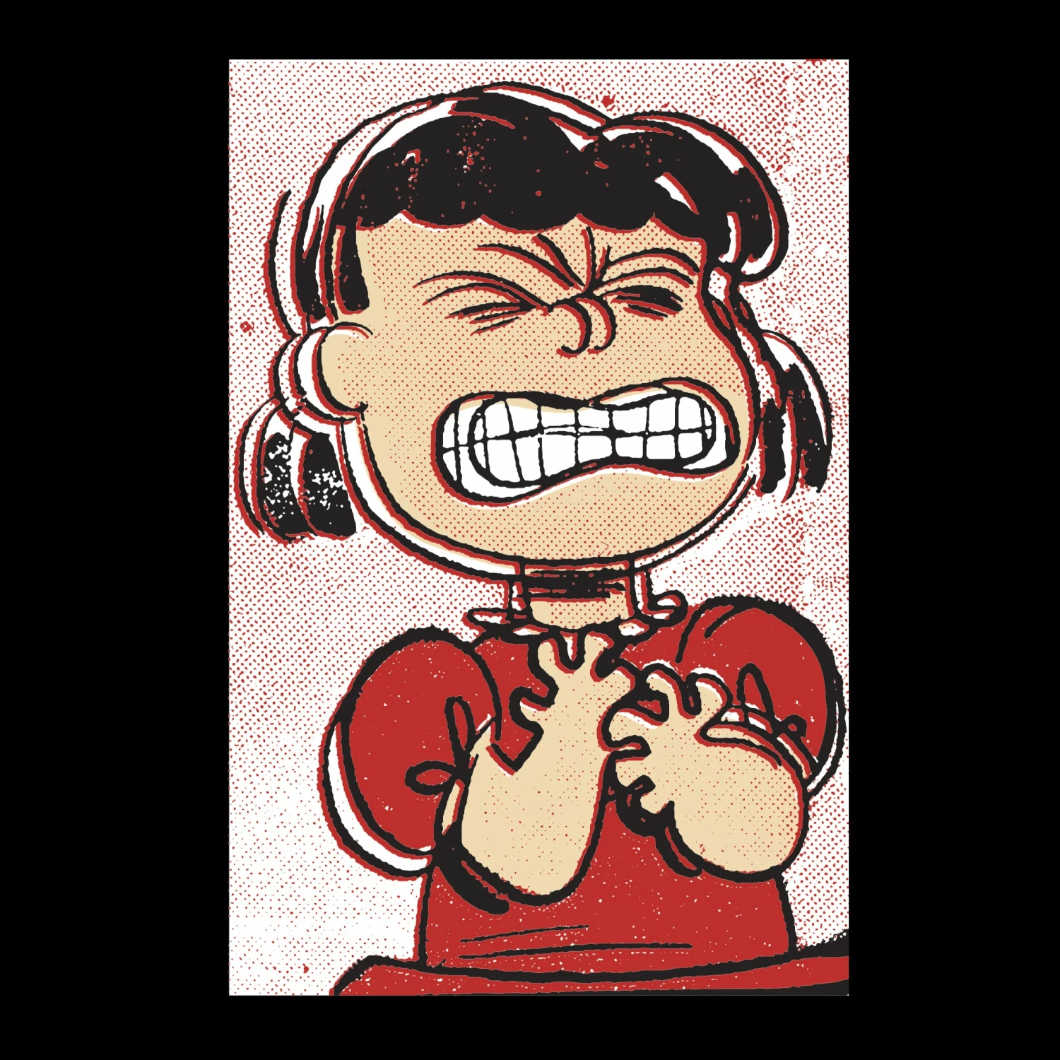 Are you as frustrated as Lucy van Pelt?! Show your solidarity with her with this exclusive Super7 Angry Lucy t-shirt! Printed on a SpectraUSA 3100 premium blank with shoulder to shoulder self jersey neck tape, double needle bottom and sleeve hems, and seamless sides. Available in unisex sizes SM – 3X with Super7 hem tag. Tee color: Black. Short sleeve 100% pre-shrunk, ring-spun cotton. Machine wash / tumble dry.
