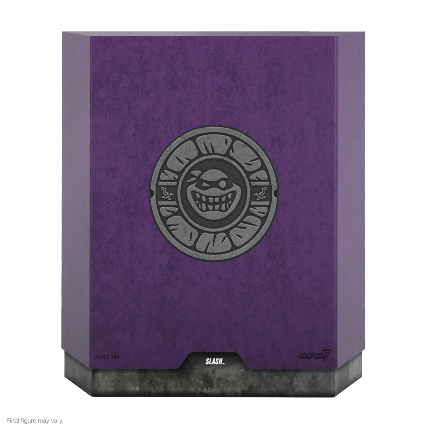 The Evil Turtle from Dimension X! Between his spiky shell, claws, and blade-adorned hands – and not to mention, his bad attitude – it’s easy to see how Slash got his name. This 7” scale fully articulated Teenage Mutant Ninja Turtles ULTIMATES! figure of Slash features battle damage and scaly skin detail, as well as interchangeable heads and hands, and a weapon rack chock full of mayhem-making accessories. He may hate pizza, parties, and pranks, but give the guy a chance and add the Teenage Mutant Ninja Turtles ULTIMATES! figure of Slash to your collection anyway!