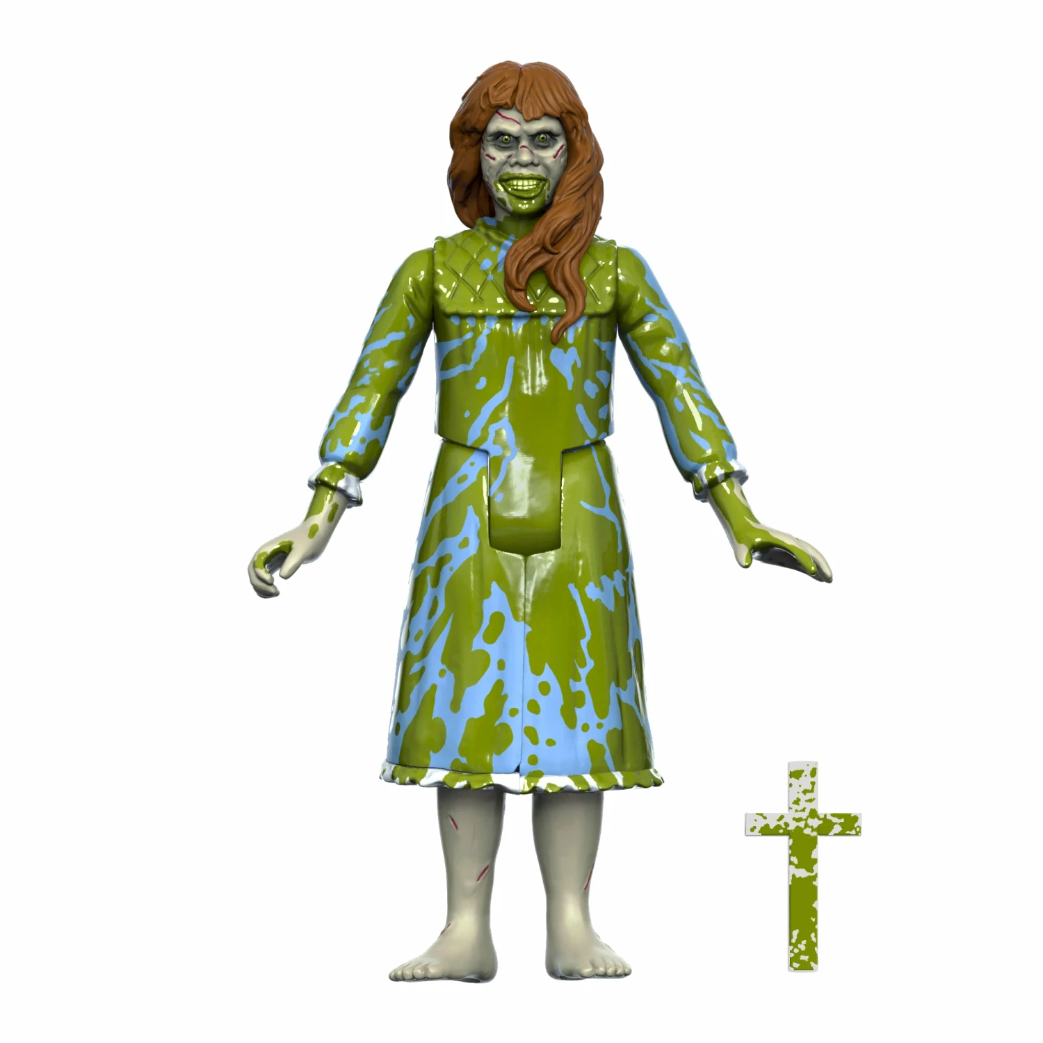 When the demon Pazuzu possesses young Regan MacNeil, she ends up spewing a lot more than foul language and foreign-tongues while fighting against an exorcism! This 3.75” articulated The Exorcist ReAction Figure of Regan MacNeil features green vomit splatter, a fully rotating head, and a vomit-splattered cross accessory. This head-turning (literally!) Regan ReAction Figure will make any horror fan who doesn’t possess one just as green with envy!