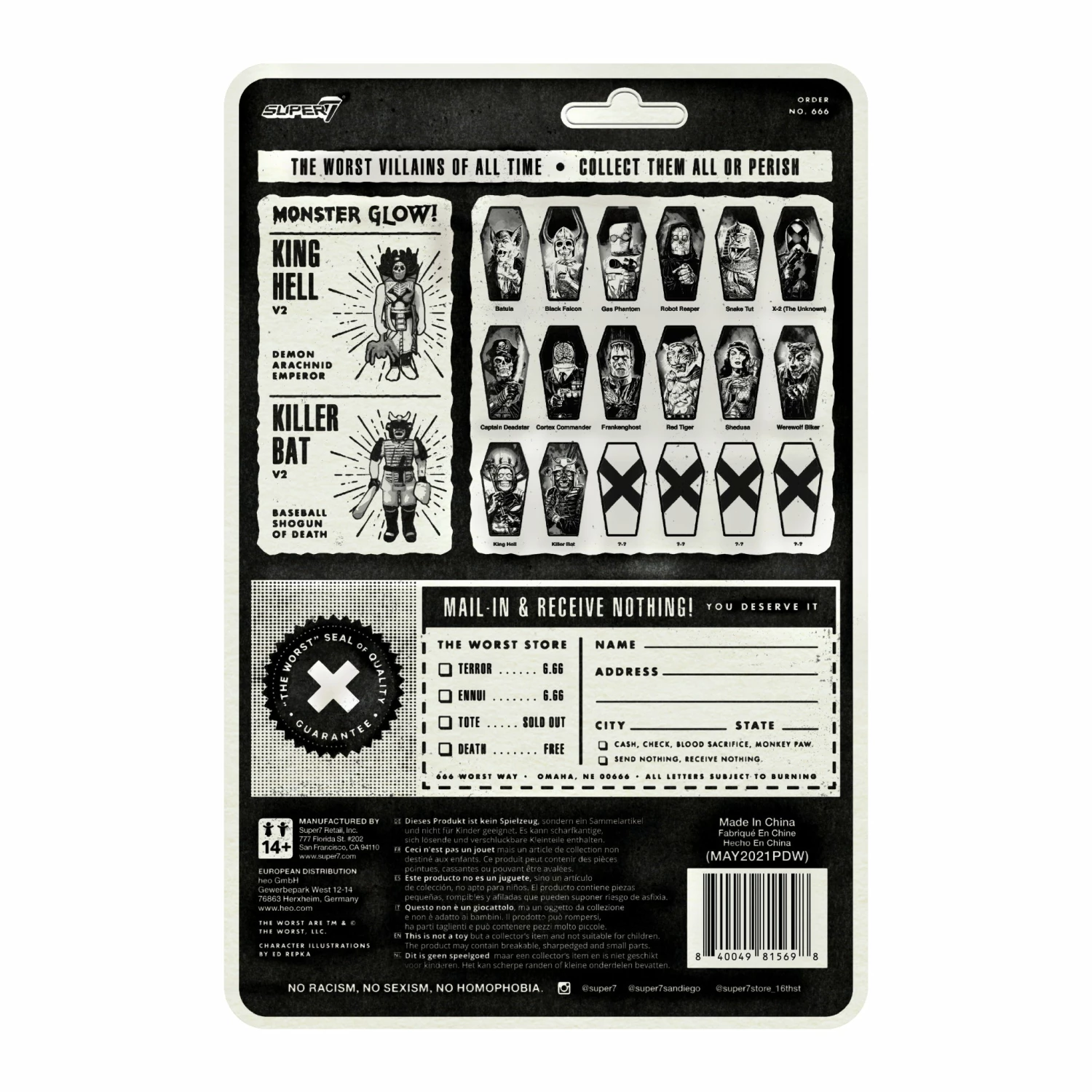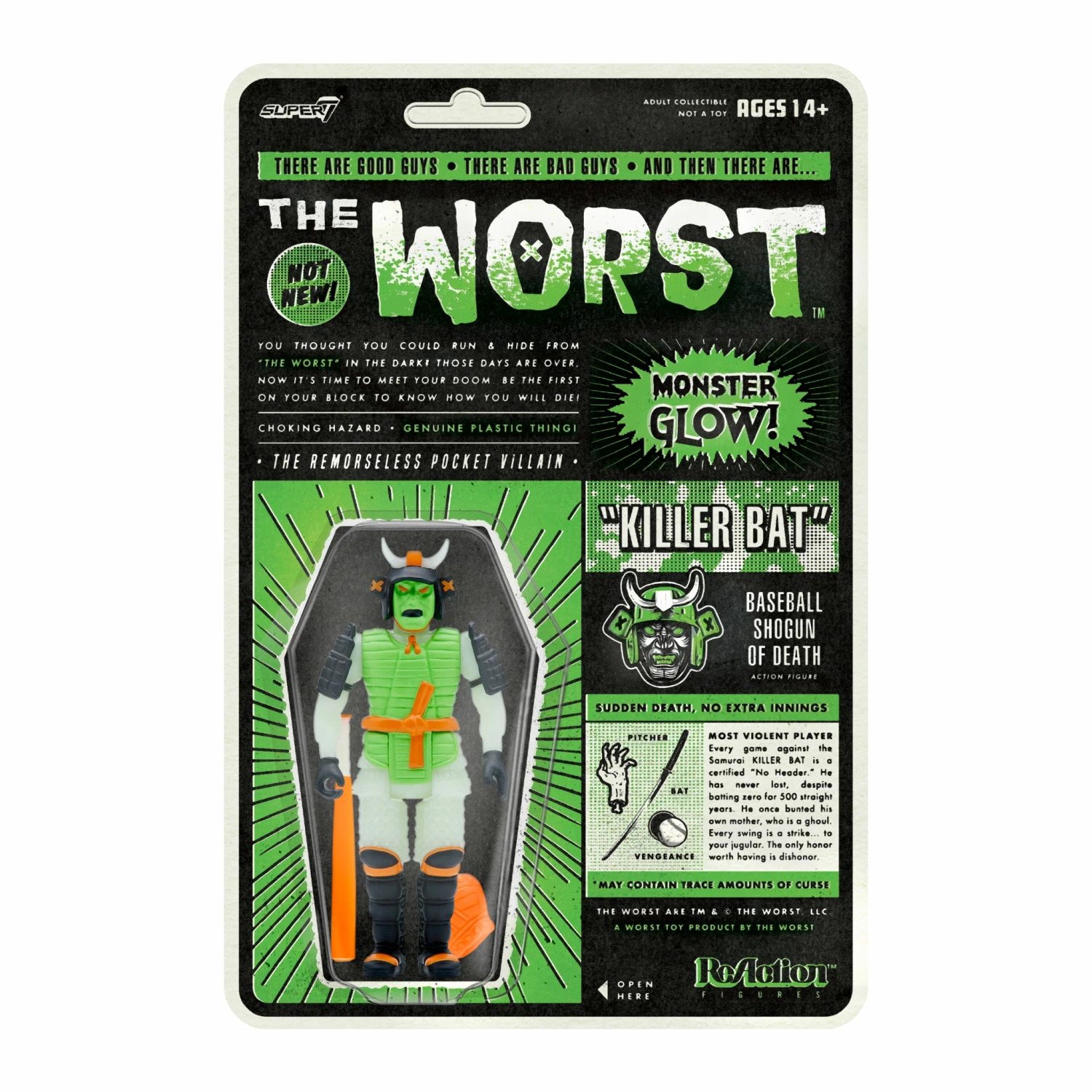 The Fall Classic returns with the Halloween version of the Baseball Shogun of Death, Killer Bat, and it’s the best of 7 with no 7th Inning Stretch! The glow-in-the-dark Hell-ween season Killer Bat comes with samurai sword and baseball bat scabbard and baseball glove accessories. The Worst are Super7’s own gang of the most villainous vile vermin! There are good guys. There are bad guys. And then there are…“The Worst”!