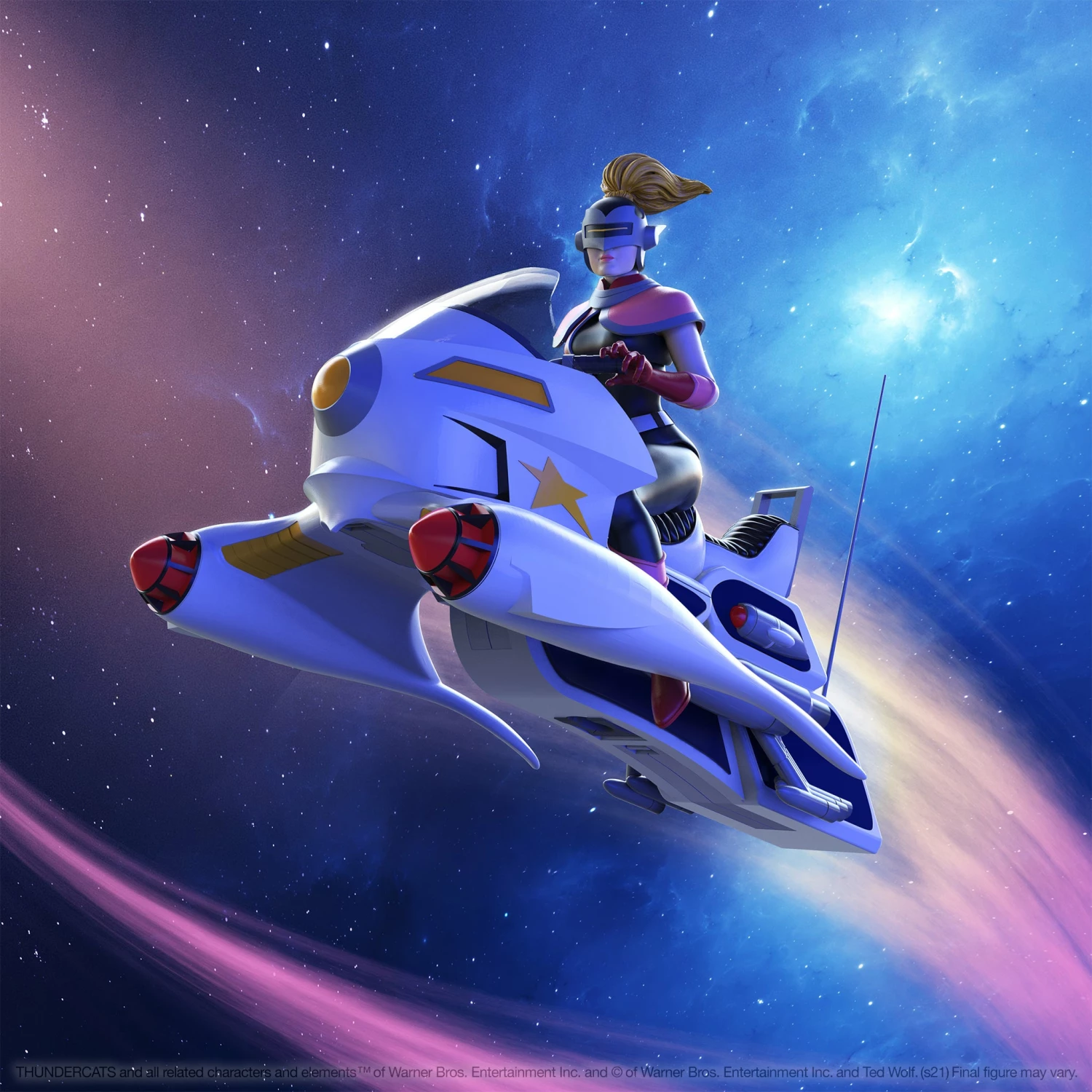 The Interplanetary Control Force’s star officer, Evil Chaser First Class Mandora, doesn’t chase galactic criminals in just any beat-up law enforcement cruiser, she uses the amazing Electro-Charger to bring evil-doers to justice! This highly detailed ThunderCats ULTIMATES! Electro-Charger vehicle can hold multiple 7” scale ULTIMATES! figures while they campaign for justice and comes with an assortment of helpful crime-fighting accessories. It also features retractable rolling, grippy wheels and kickstand as well as a clear flight stand so that it can be displayed as a planetary wheeled vehicle or “in-flight” as an intergalactic flying machine.