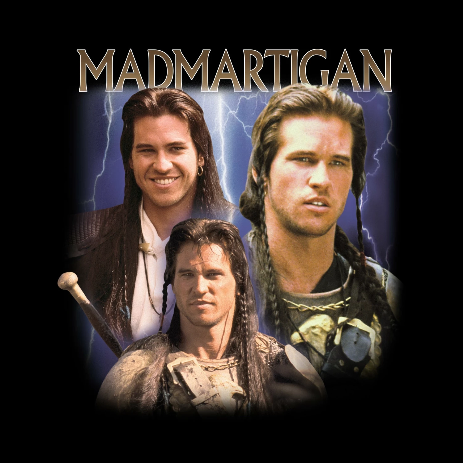 Fans of the classic 80’s fantasy movie Willow are simply mad for Madmartigan! This black Madmartigan t-shirt features a throwback-style montage of the many faces of the wayward warrior on his way to saving the kingdom- and stealing many a heart while he does so! 100% cotton & machine washable. Available in sizes S-3X.